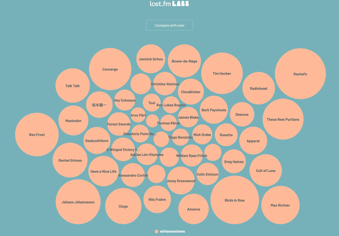 I’ve been tracking my listening habits through last.fm since 2009, averaging about 30 tracks per day. Analyzing this data has taught me a lot; I wish I had all my life music tracked.